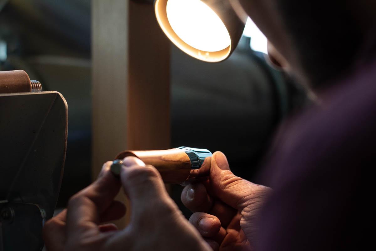 Schütze die Holzteile vor Wasser. Ein paar Tropfen machen dem mehrfach behandelten Holz nichts aus, sollten aber vermieden werden. Der Präzisionstamper mit Griff aus Aluminium darf mit Wasser in Berührung kommen, darf aber auf keinen Fall in die Spülmaschine.