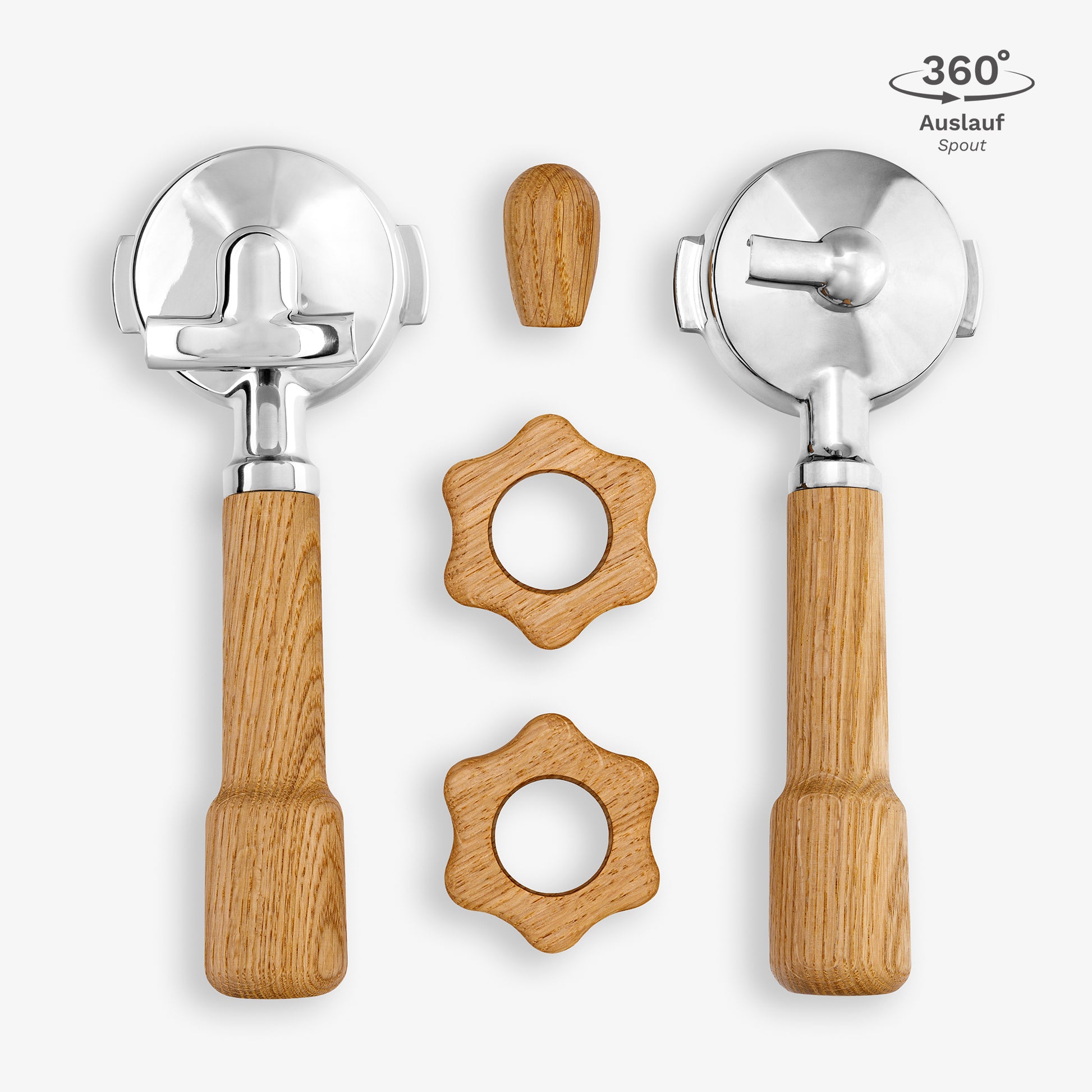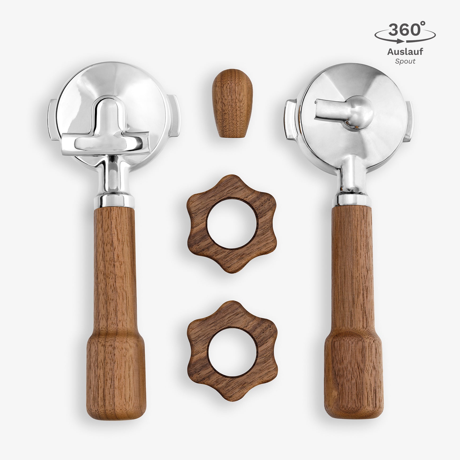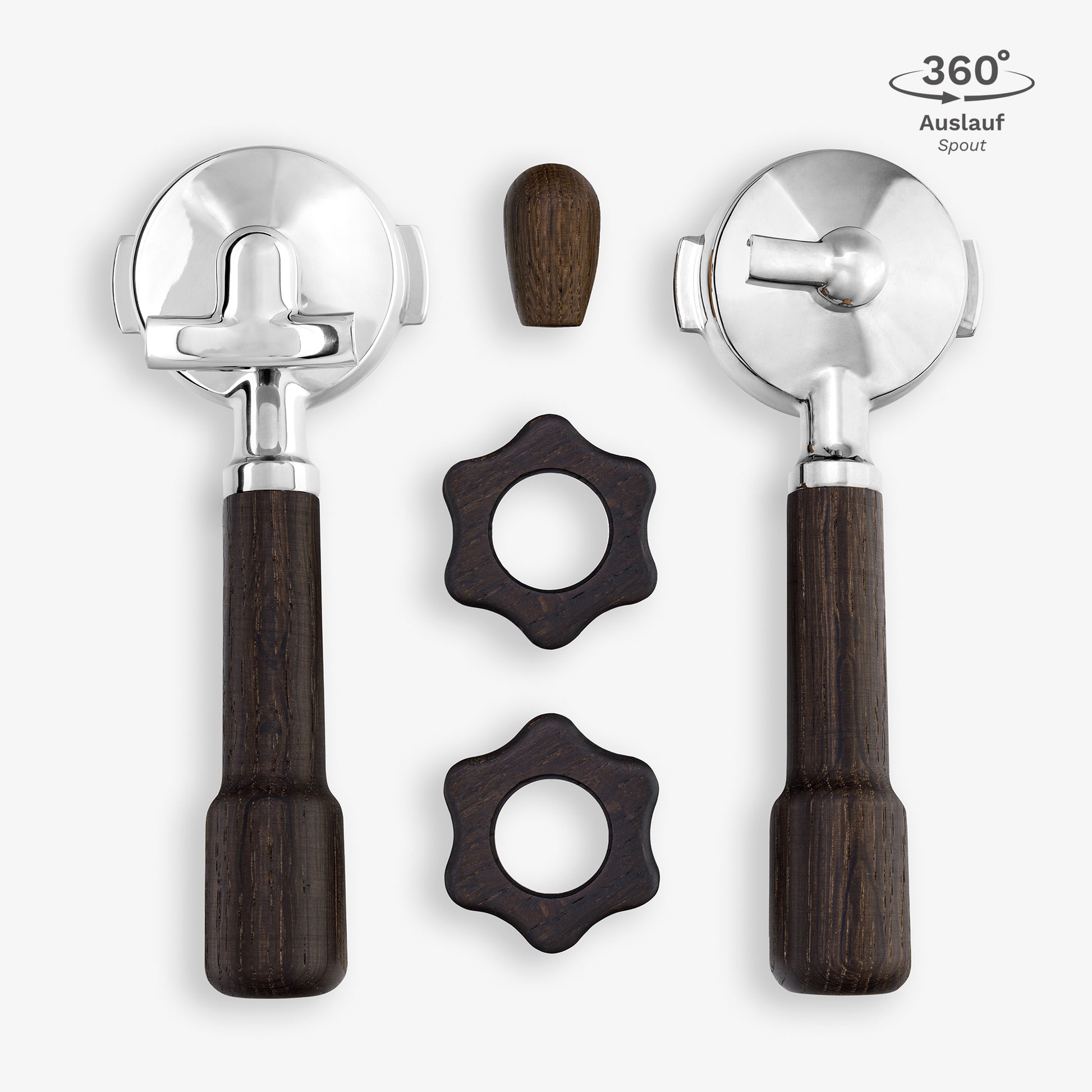 2x Siebträger (Griffstück classic und Edelstahl-Siebträgerkopf)