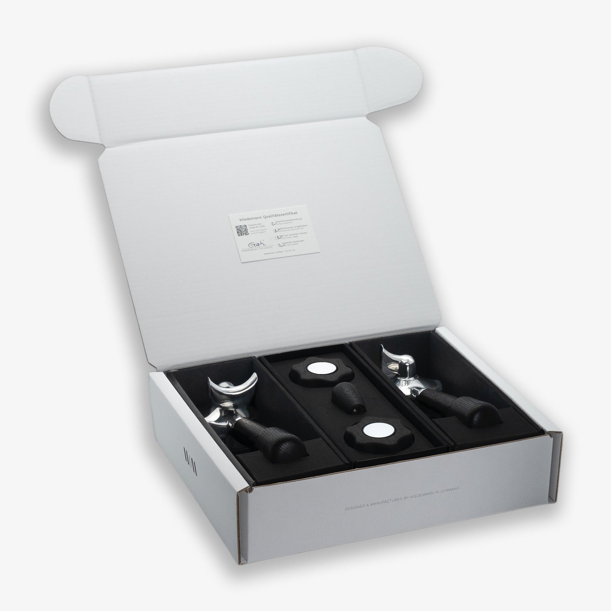 Griffsets ohne Siebträgerköpfe haben denselben Lieferumfang abzüglich Siebträgerköpfe.