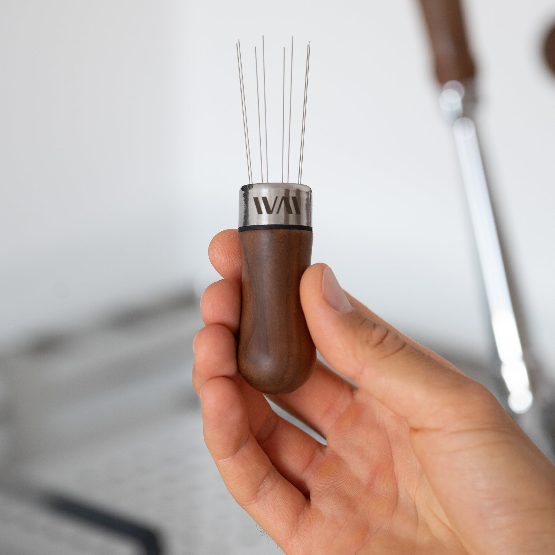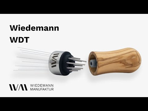 Unser WDT (Auch als "Wiedemann Distribution Tool" bekannt) ist ein wichtiger Helfer dabei, Verklumpungen im Kaffeemehl schnell und zuverlässig zu lösen. Ebenso hilft es dabei, das Kaffeemehl gleichmäßig im Siebträger zu verteilen. Beides verbessert die Chance auf eine gute und geschmacklich ausgewogene Extraktion deutlich.